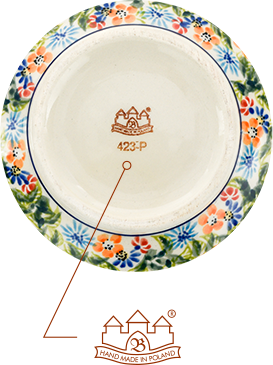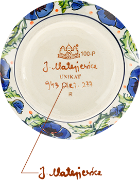 Logo z podpisem zdobnika - umieszczane na wyrobach ZC „ZC „BOLESŁAWIEC”.”, aby podkreślić wyjątkowość naczynia i jego indywidualny charakter poprzez artystyczne wykorzystanie pędzla i stempla.